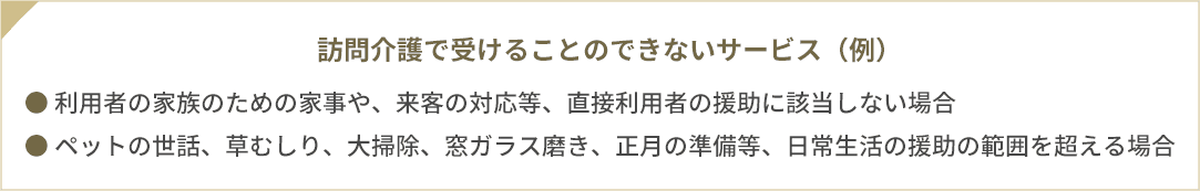 介護保険(訪問介護サービス)で利用ができないサービスは、どんなものがありますか?