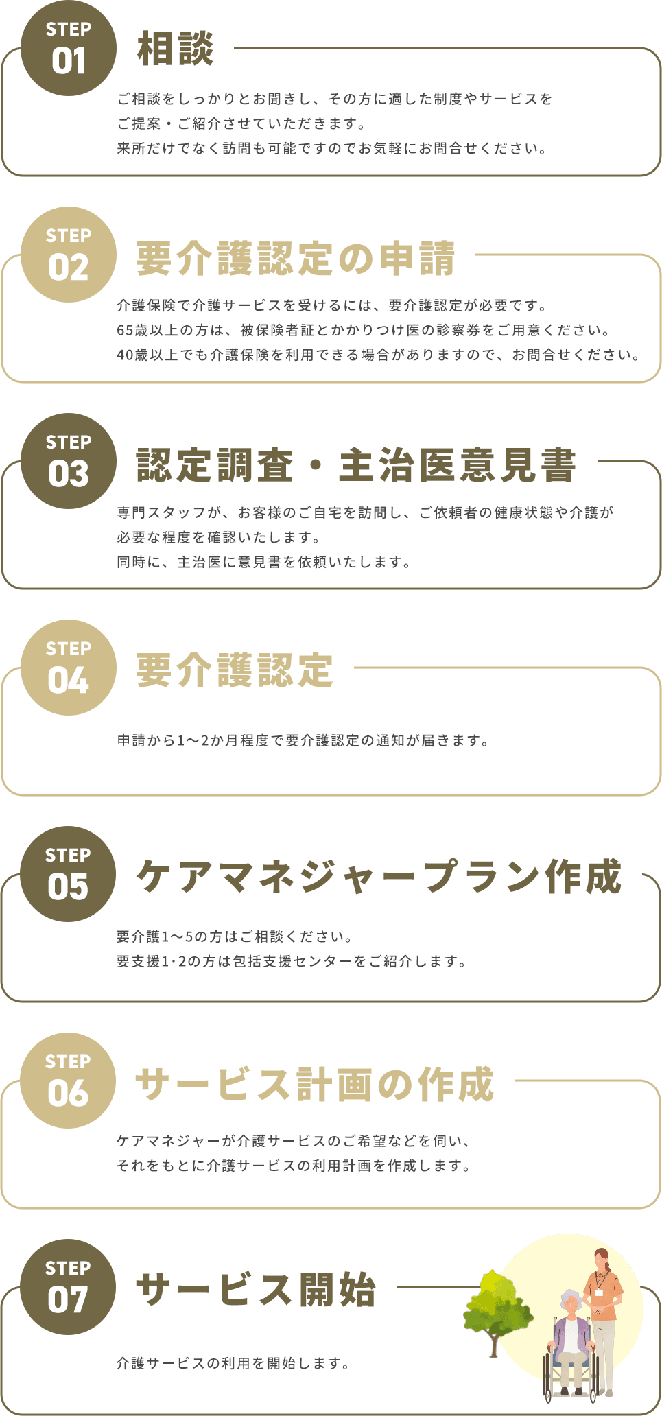 要支援、要介護の方に介護サービスや日常生活の支援を行います。